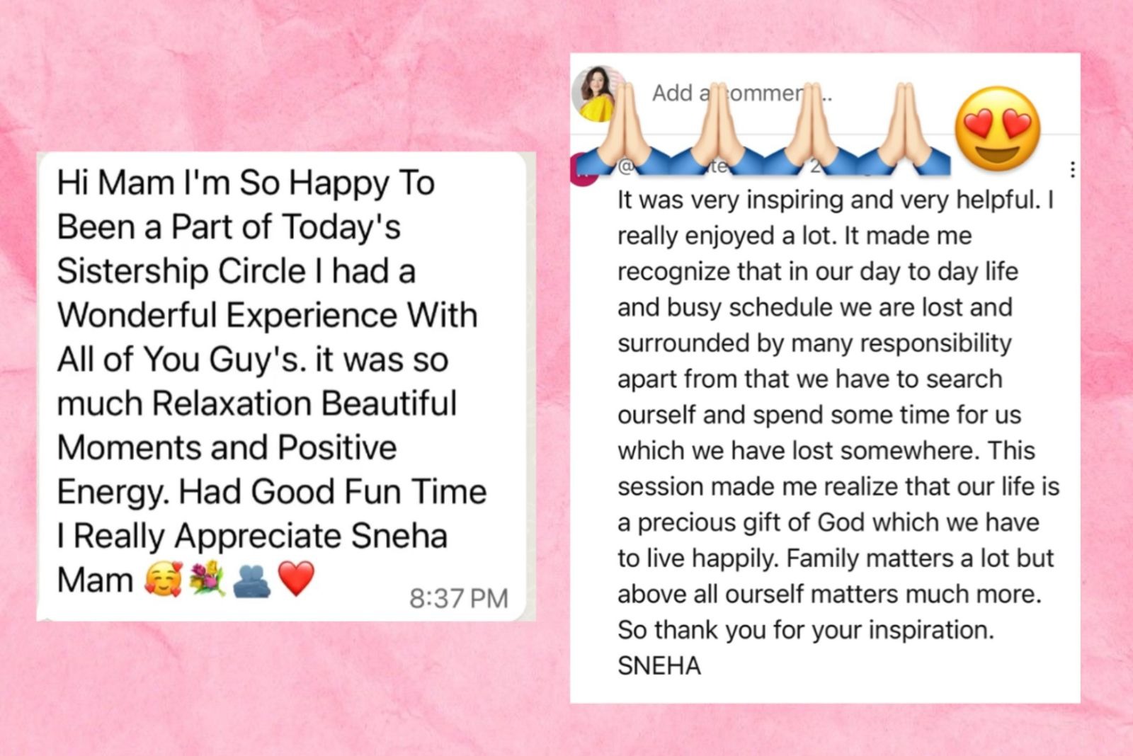 Get in touch. I'd love to hear from you. DM me on @sneha.empowers on instagram / www.snehanoronha.com